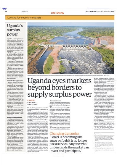 Uganda Eyes Markets Beyond Borders to Supply Surplus Power. DM 27.1.26
